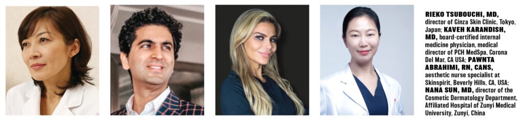 ‘Mesotherapy was first developed by the French physician Dr Michel Pistor,’ reported dermatologist Dr Rieko Tsubouchi, director of Ginza Skin Clinic (Tokyo, Japan). ‘His original aim was to treat pain and vascular disorders by injecting medications directly into the mesoderm, or middle layer of skin. At the time, the introduction of an extremely fine needle (30 G) enabled him to deliver small amounts of medication precisely to the targeted area, thereby minimising systemic side effects. Today, advancements in technology have expanded our options for mesotherapy beyond the manual technique and traditional mesotherapy guns, offering a wider range of delivery methods.’ The latest evolutions of needle-free mesotherapy devices utilise electroporation and sonophoresis (ultrasound waves), which are gaining momentum among some aesthetic manufacturers.