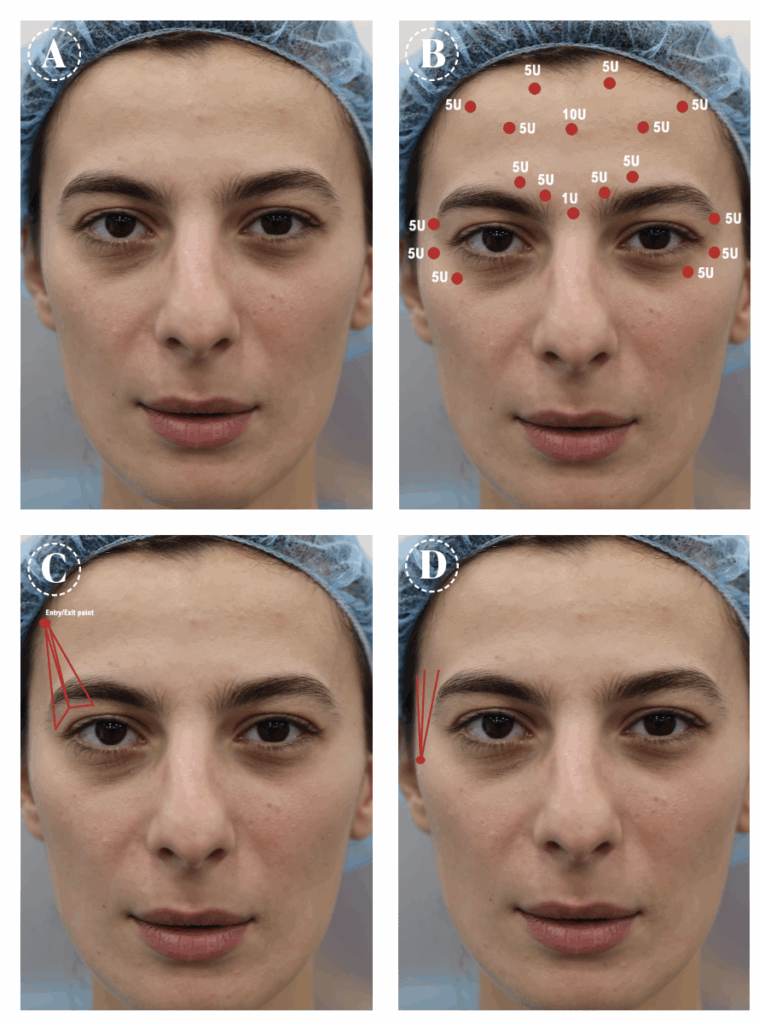 In this particular case, the first step was an injection of 100U of Abo Botulinum toxin A (Figure 1B).